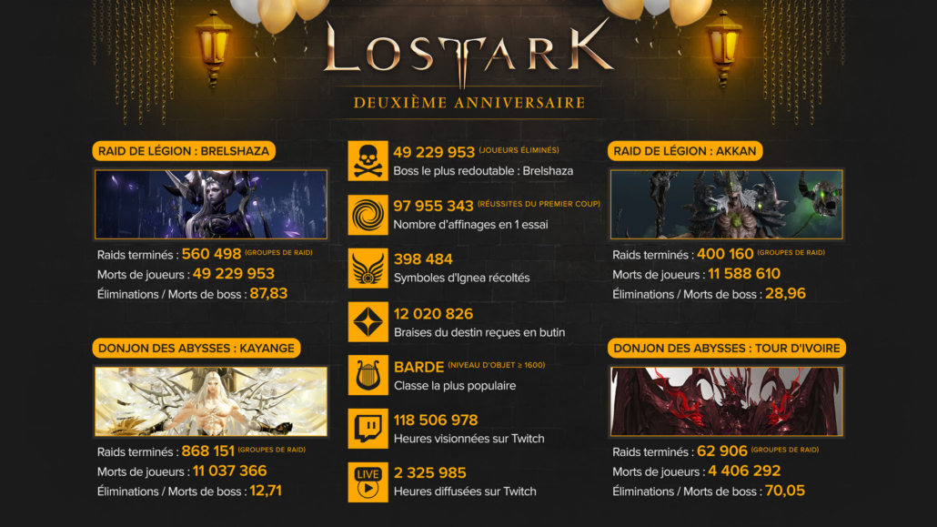 Vous trouverez ci-dessous une nouvelle infographie riche en données, qui met en évidence les différents succès accomplis par Lost Ark au cours de sa deuxième année d’existence.